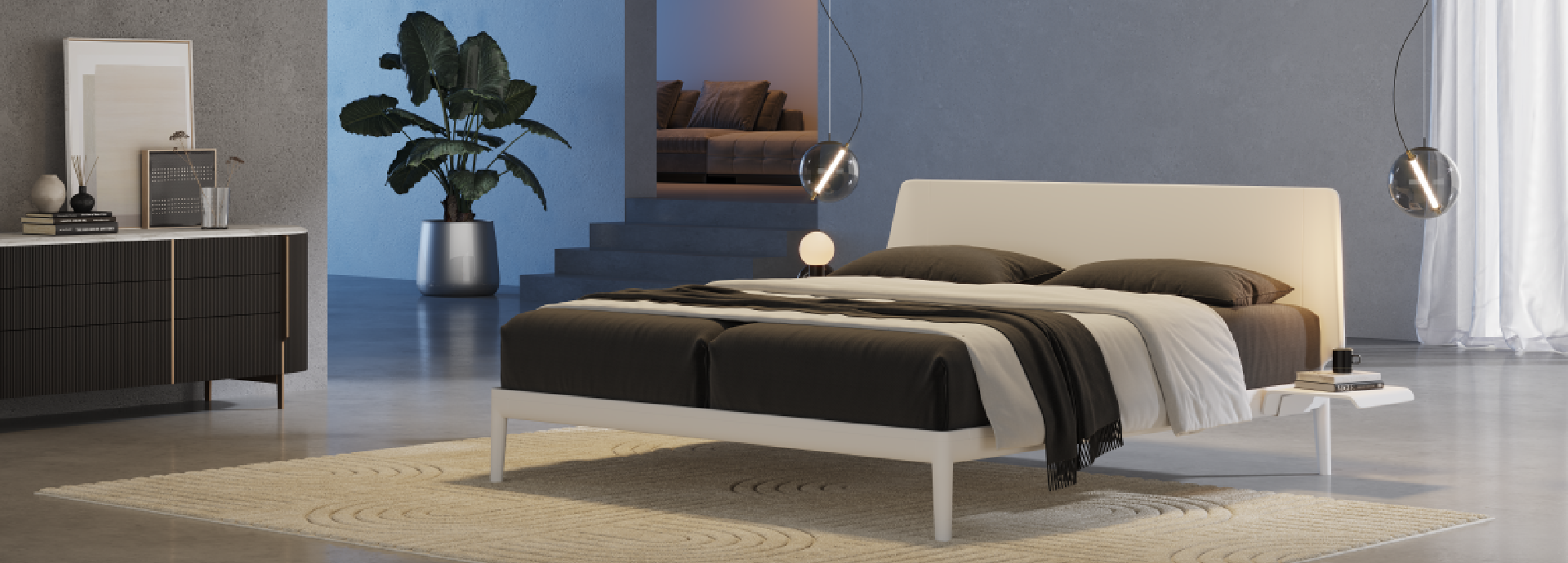מערכת שינה בעלת קווים נקיים ומעוגלים ובמנעד של צבעים וסגנונות לבחירה,