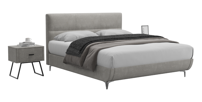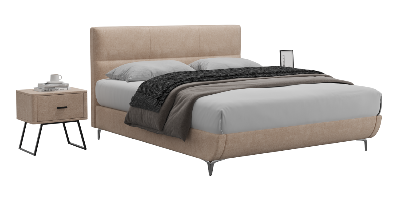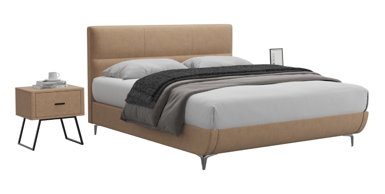 הבד המרופד, הקווים הנקיים והרגליים המודרניות מעניקים ל-DOMANI נוכחות יוקרתית בחדר השינה.