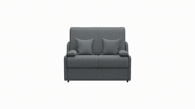 הספה מעוצבת עם משענות צד צרות במיוחד עם כרית למשענת היד כך שבמראה ובפועל לא תופסת מקום רב בחדר.